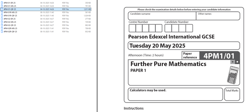 EDEXCEL IGCSE FURTHER PURE MATHS 2025 JUNE PAPERS WITH MARKSCHEMES