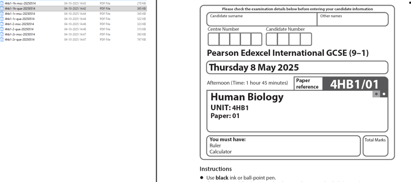 EDEXCEL IGCSE HUMAN BIOLOGY 2025 JUNE PAPERS WITH MARKSCHEMES