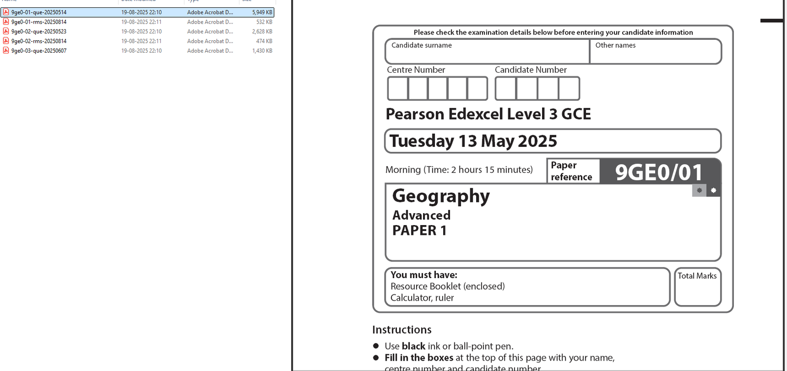 EDEXCEL A LEVEL GEOGRAPHY 2025 PAPERS WITH MARKSCHEMES
