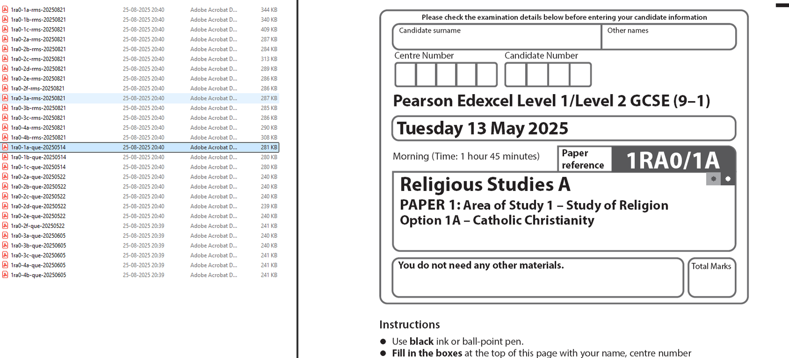 EDEXCEL GCSE RELIGIOUS STUDIES A 2025 PAPERS WITH MARKSCHEMES