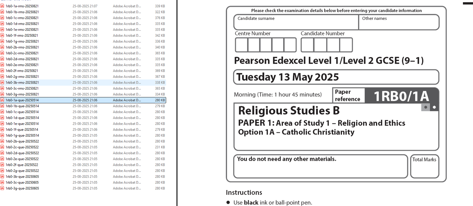 EDEXCEL GCSE RELIGIOUS STUDIES B 2025 PAPERS WITH MARKSCHEMES