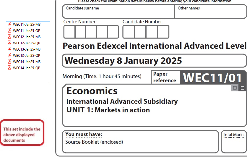EDEXCEL IAL ECONOMICS 2025 JANURAY QUESTION PAPERS WITH MS